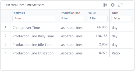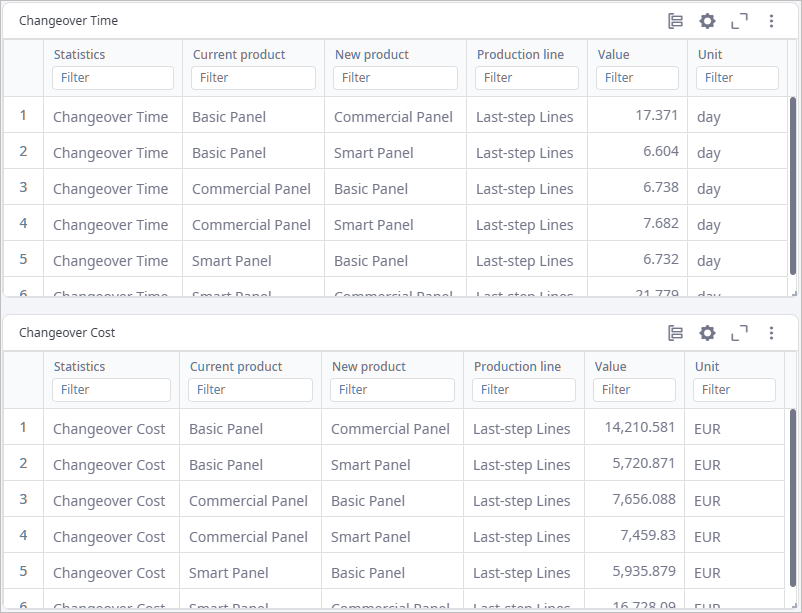 For more details on changeover times and the incurred expenses refer to the Changeover Time and Changeover Cost statistics.