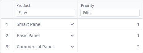 This means that all orders queue for production in the order, in which they arrive at the factory. We will define product priorities by assigning the highest priority to the Commercial Panel product (due to its highest price among the final products).